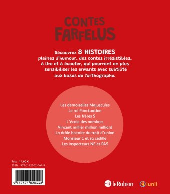 Des histoires amusantes à lire et à écouter !Découvrez 8 HISTOIRES pleines d’humour, des contes irrésistibles, à lire et à écouter, qui pourront en plus sensibiliser les enfants avec subtilité aux bases de l’orthographe.