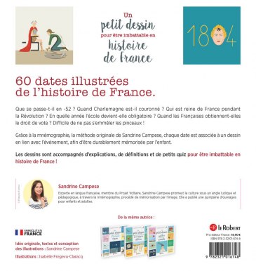 À chaque date est associée une astuce visuelle, à la fois instructive, drôle et poétique. Les dessins sont accompagnés d’explications pédagogiques et ludiques pour être imbattable en histoire de France !