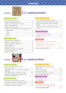 • 4 parties pour 4 épreuves : commentaire, contraction, essai, oral. Pour chacune, des exercices variés décortiquent tout le processus réflexif à connaître pour permettre aux élèves d’acquérir des bases solides. Des mises en situation concrètes amènent à mieux maîtriser construction du devoir, syntaxe et vocabulaire.